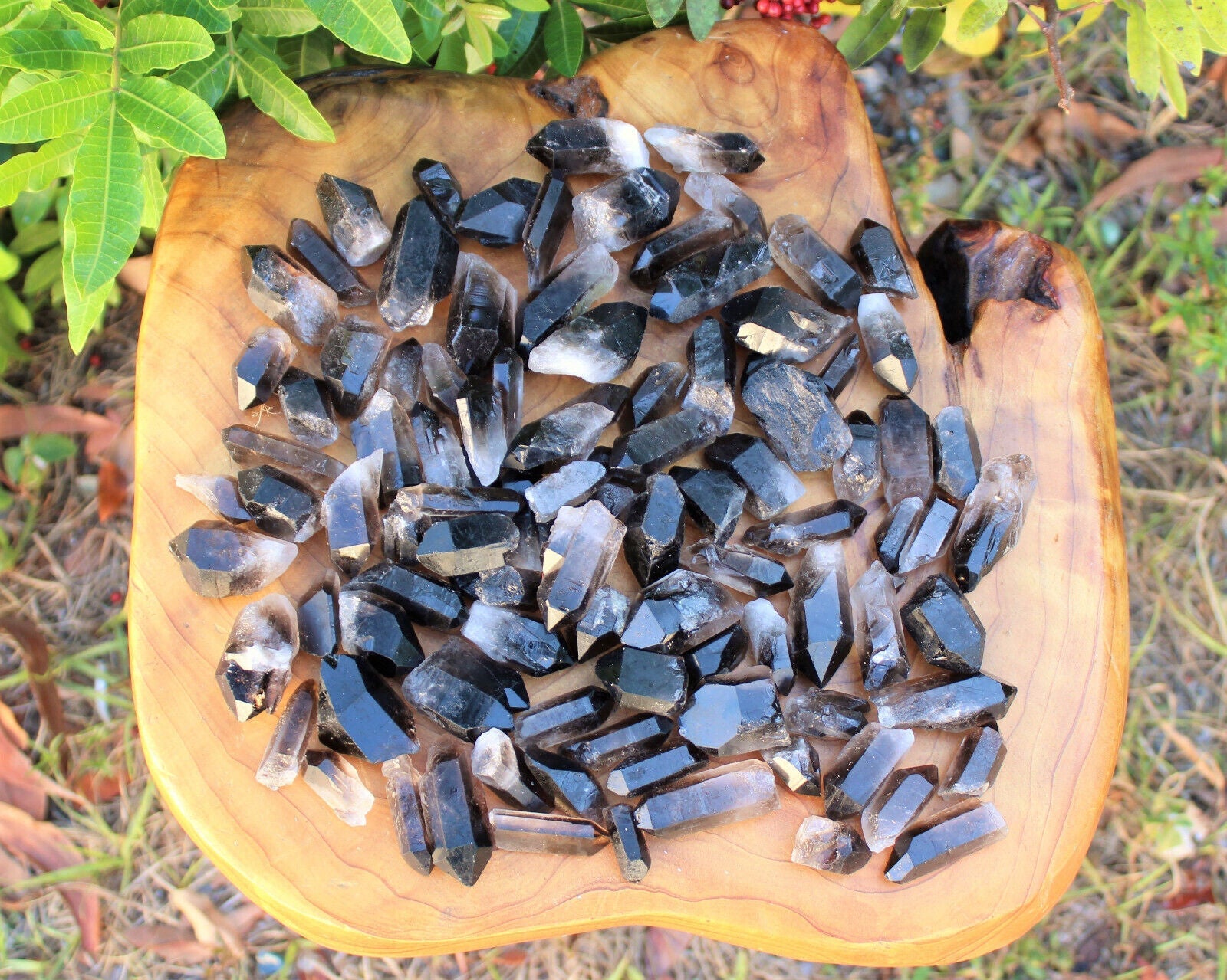 Stunning Smoky Quartz Points and Clear Quartz Points Box Lot. You will receive half Smoky and half Clear Quartz in a gift box totaling 1/2 lb (8 ounces) of Points. Size will vary by piece but most are in the range 0.75" - 1.75".