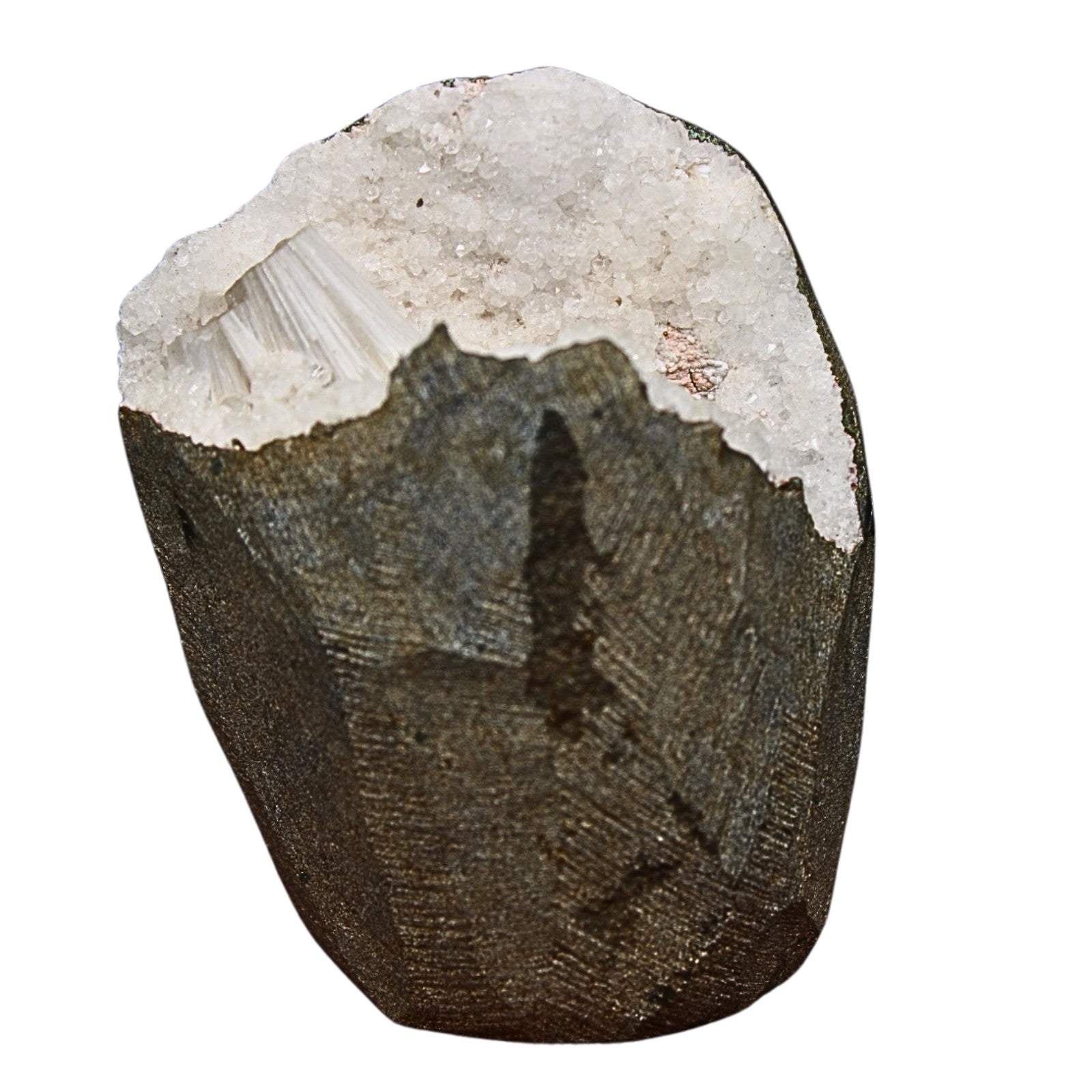 This beautiful Scolecite geode features delicate needle-like formations and a sparkling crystal interior. A powerful specimen for collectors, crystal healers, and energy workers alike, it carries serene, high-frequency vibrations ideal for spiritual work and peaceful environments.