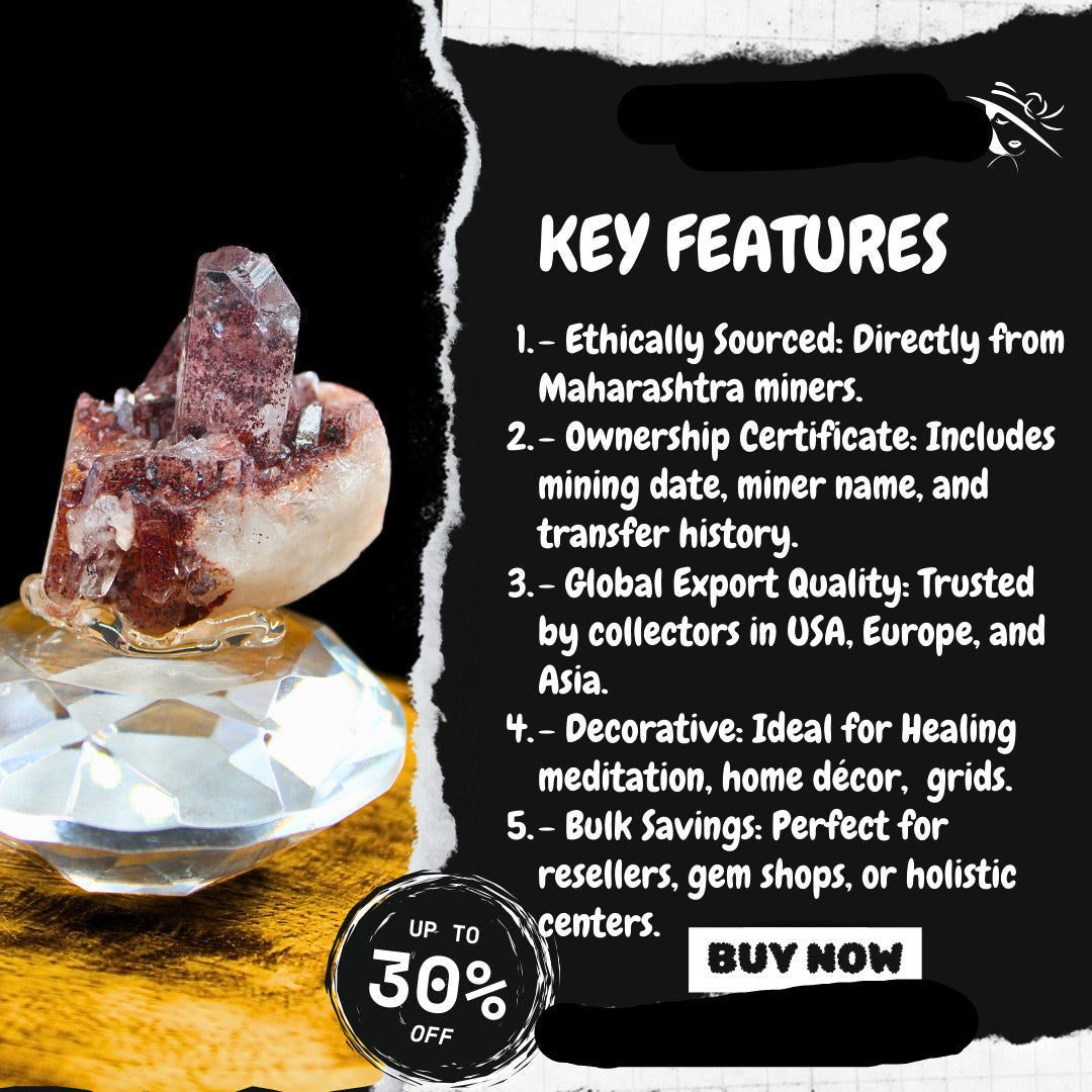Rare Red Phantom Quartz on Matrix Mineral Specimen Crystal Cluster Collectible