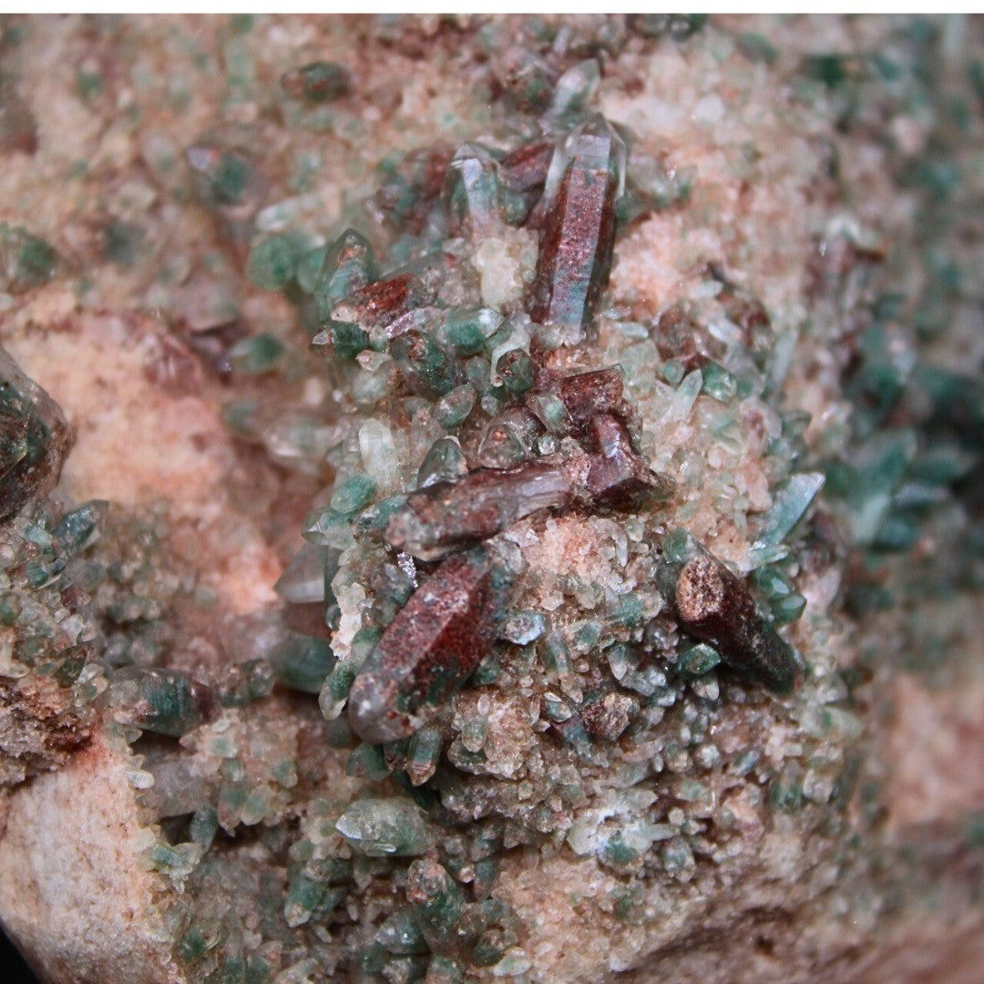 🔸 Formation: Chlorite inclusions forming phantom layers within quartz