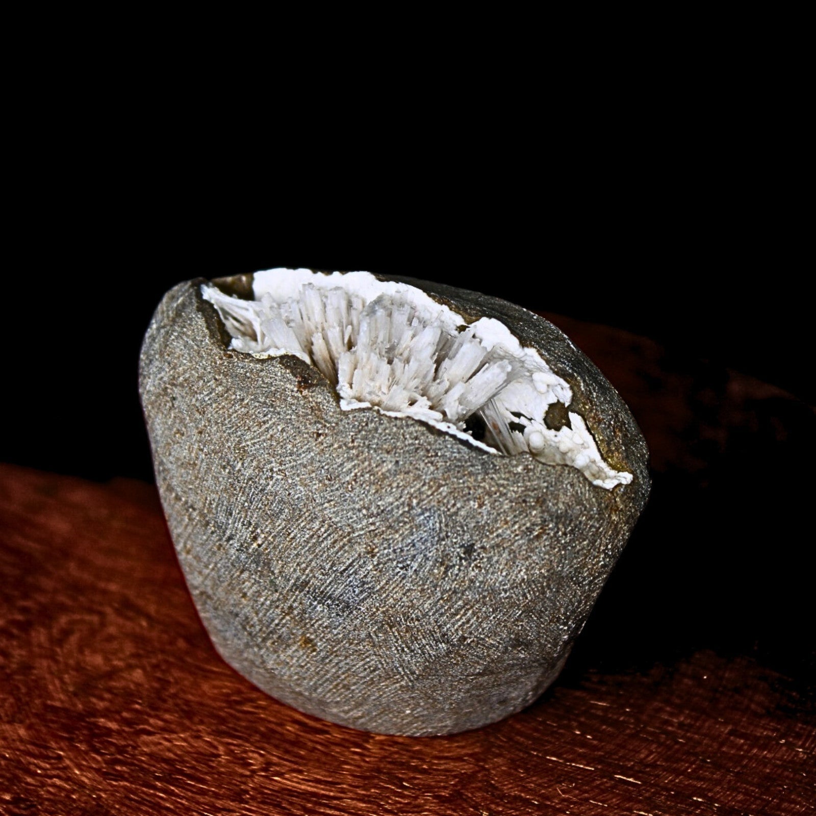 A stunning Scolecite geode featuring intricate, needle-like formations that shimmer under light. Ideal for collectors, spiritual healers, and interior decor lovers.