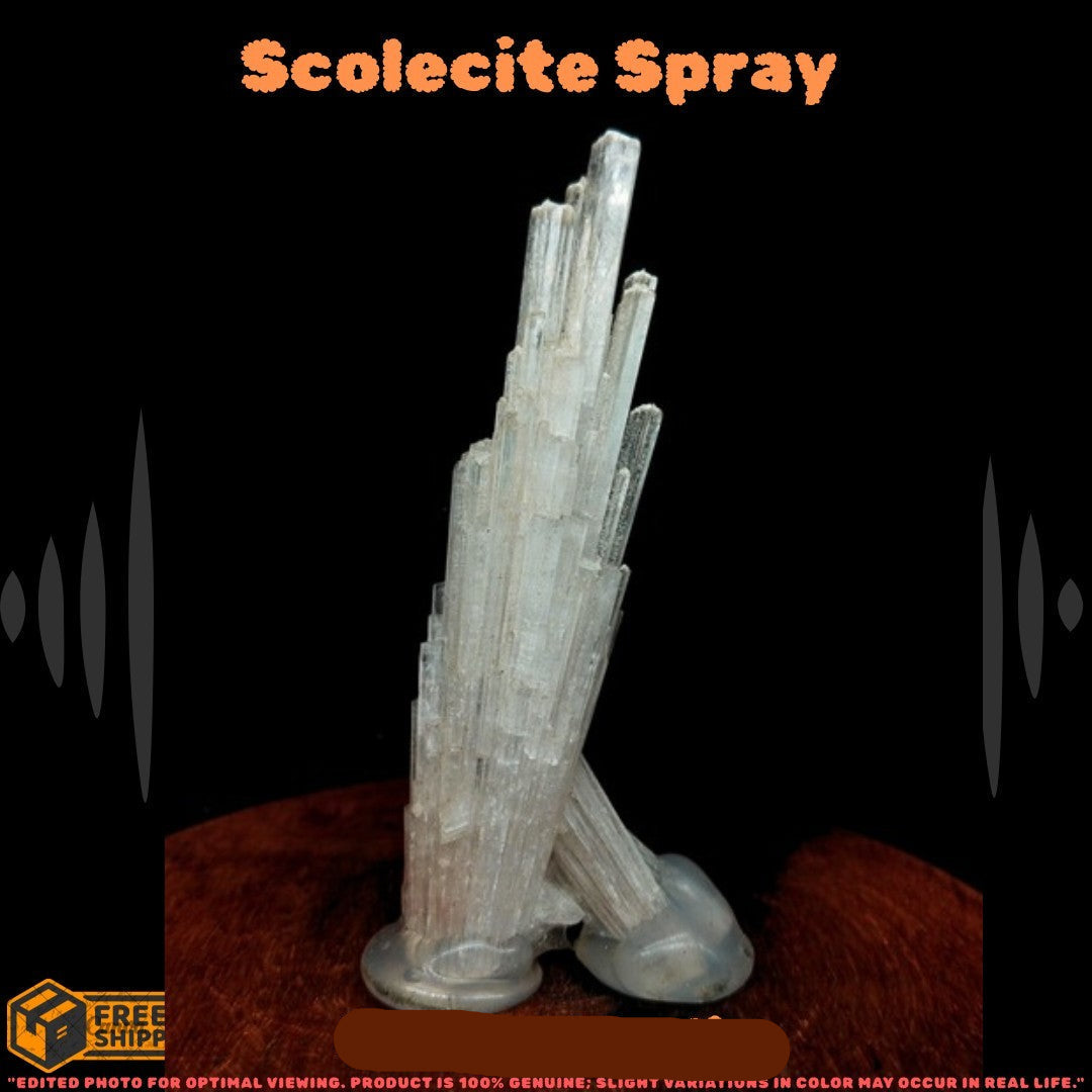 This is a 100% natural Scolecite cluster – not man-made or dyed. Each piece is unique in shape and spray pattern. The item shown is the exact crystal you will receive. 📸